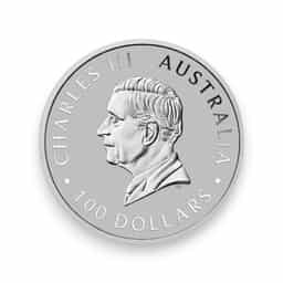 The 2024 1 oz Australian Platinum Kangaroo $100 Coin, minted in .9995 fine platinum by the Perth Mint, represents a significant addition to Australia's bullion program, spotlighting the iconic kangaroo, a symbol of the Australian outback's unique wildlife and natural beauty. With a legal tender value of $100 AUD, this coin combines investment appeal with collectible beauty, featuring a meticulously crafted design that captures the essence of the kangaroo in a dynamic and realistic portrayal. This release continues the tradition of the Platinum Kangaroo series, offering investors and collectors the opportunity to own a piece of fine platinum artistry that celebrates one of Australia's most beloved animals. The obverse of the coin features the effigy of King Charles III, reflecting the continuity of the British monarchy and its association with Australian currency. The 2024 Platinum Kangaroo is not only a valuable asset for those looking to diversify their portfolio with precious metals but also a collector's item that embodies the Perth Mint's commitment to numismatic excellence and the rich tapestry of Australia's natural heritage.