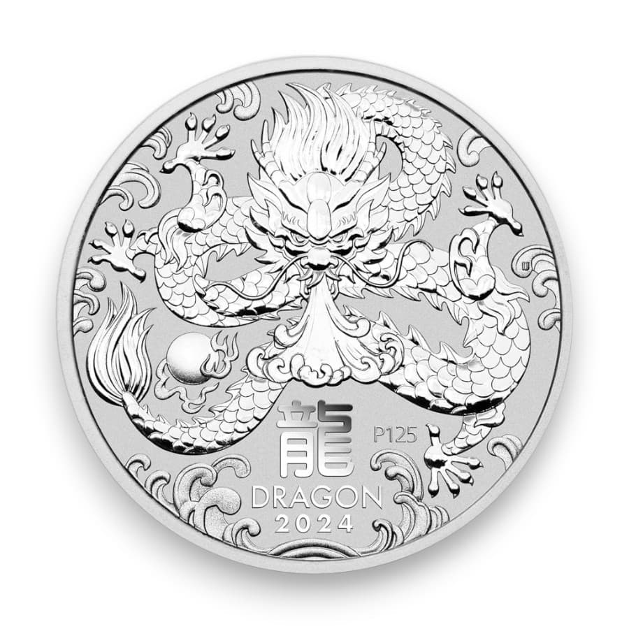 The 2024 Australian 2 oz Silver Lunar Dragon Series III .999 Fine $2 Coin from the Perth Mint is an exceptional piece in the beloved Lunar Series III, celebrating the Year of the Dragon. This coin, struck in .999 fine silver and weighing 2 ounces, highlights the dragon, a powerful symbol in Chinese culture associated with strength, wisdom, and prosperity. The design for 2024 is expected to feature a dynamic and intricate portrayal of the dragon, capturing its legendary grace and vitality, which is a hallmark of the Perth Mint's dedication to numismatic art and cultural heritage. The obverse of the coin features the effigy of Queen Elizabeth II, denoting its status as legal tender with a face value of $2. This larger, 2 oz silver coin is especially sought after by collectors and investors not only for its precious metal content but also for the rich symbolism and artistic value it represents. The Lunar Series III has been celebrated for its annual release of zodiac animals, and the dragon year is particularly popular, making the 2024 Silver Lunar Dragon a prized addition to any collection or investment portfolio, cherished for its beauty, craftsmanship, and cultural significance.