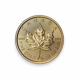 The 2025 Canadian Gold Maple Leaf 1/2 oz $25 Coin is a stellar offering from the Royal Canadian Mint, known for its high purity and elegant design. This coin is crafted from 1/2 troy ounce of .9999 fine gold, reflecting its exceptional quality. The obverse features the latest effigy of King Charles III, signifying its status as legal tender with a face value of $25 CAD. The reverse proudly displays the iconic Canadian maple leaf, a symbol deeply rooted in Canadian heritage. The coin also includes advanced security features such as precision radial lines and a micro-engraved maple leaf within the coin’s field, enhancing both its security and aesthetic appeal. This coin is a favorite among investors and collectors alike for its purity, security features, and the Royal Canadian Mint’s reputation for quality.