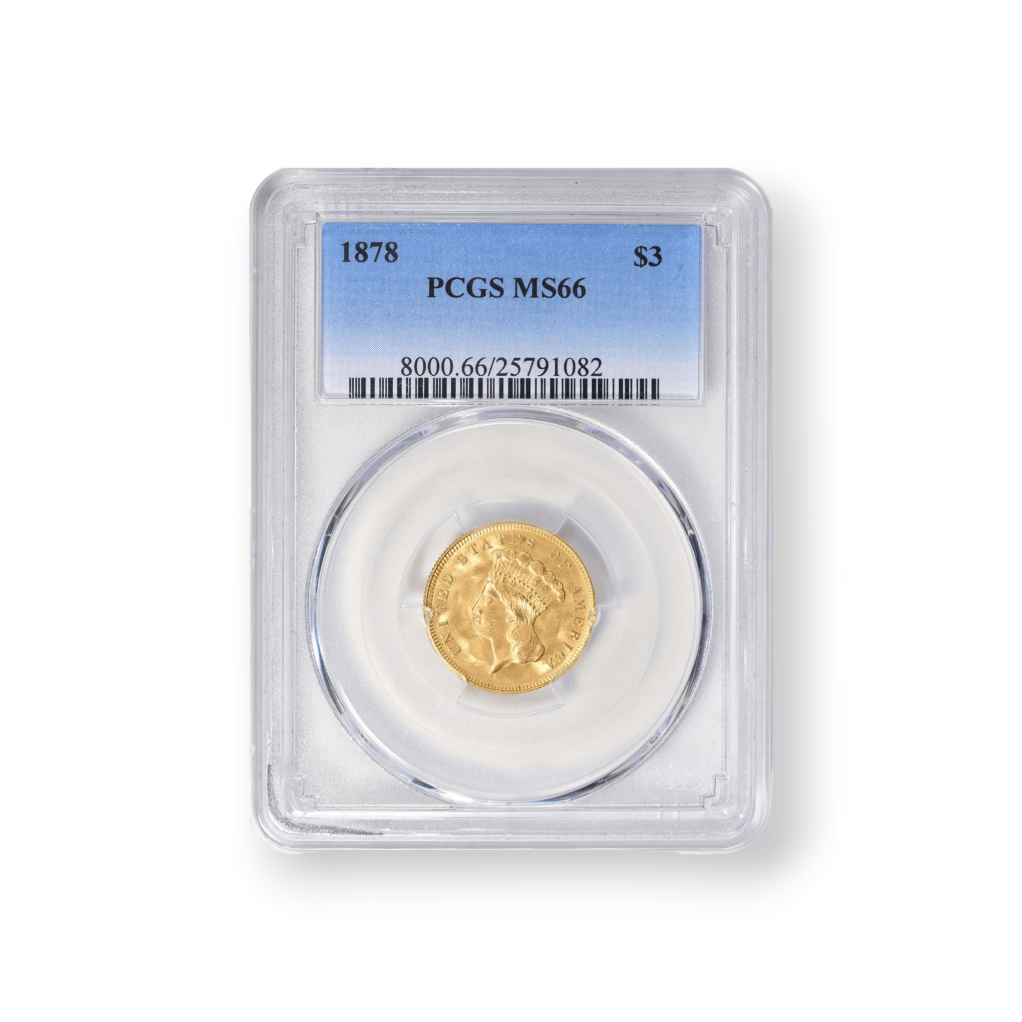 The $3 Gold Princess US Gold Coin, often referred to simply as the "$3 Princess Gold Coin," is a historic and unique denomination in American numismatics. Designed by James B. Longacre, these gold coins were minted from 1854 to 1889. The obverse features a portrayal of Lady Liberty as a princess wearing a feathered headdress, and the reverse displays a wreath and the coin's denomination. PCGS Generic Date indicates that the coin has been certified by the Professional Coin Grading Service but has not been attributed to a specific date within the series, often because these coins were produced with low mintages and years were not always clearly marked. Despite their relatively small size and denomination, $3 Princess Gold Coins are highly collectible and prized for their historical significance and unique design.