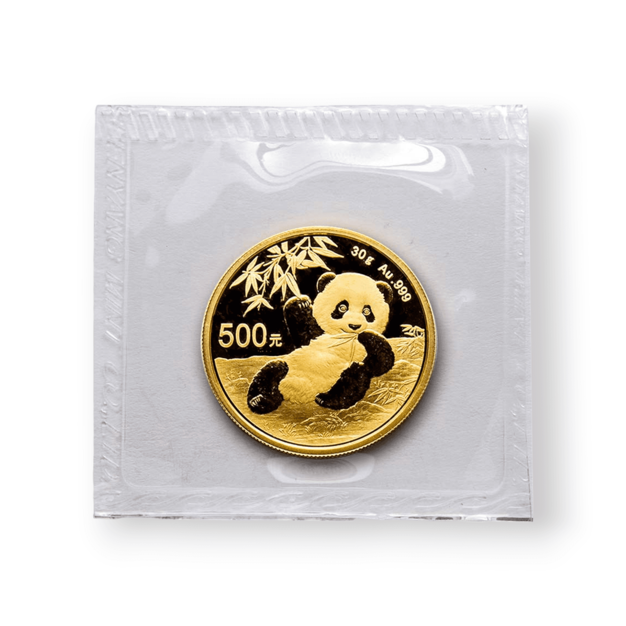 The 30 Gram Chinese Gold Panda, sealed with a .999 fine gold purity, is a standout offering in the world of precious metals, issued by the People's Republic of China. Available in random date issues, this coin is part of the celebrated Chinese Panda series, which has captivated collectors and investors alike with its annually changing designs. Each coin showcases the panda, China's national symbol, in various settings and compositions, highlighting the beauty and unique characteristics of this beloved animal. The shift to a 30-gram weight from the traditional 1 oz format in 2016 was a significant change, aligning the series with the metric system and further distinguishing the Chinese Gold Panda coins in the global market. Sealed to preserve its condition and authenticity, the 30 Gram Chinese Gold Panda combines investment appeal with collectible allure, making it a prized asset for those looking to diversify their portfolios with gold while also enjoying the artistic and cultural value of one of China's most iconic coin series.