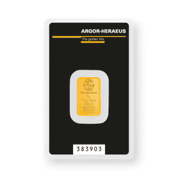 The 5 Gram Argor Heraeus Gold Bar, sealed in a carded assay with .9999 fine purity, is a high-quality offering from the well-respected Swiss refinery. Containing 5 grams of 99.99% pure gold, this bar is known for its exceptional standard of quality. The tamper-evident assay card not only provides protection but also serves as a guarantee of authenticity, including key details like weight, purity, and a unique serial number. This compact and highly pure gold bar is favored by investors and collectors for its combination of Argor Heraeus's trusted craftsmanship and the practicality of owning smaller denominations of gold.