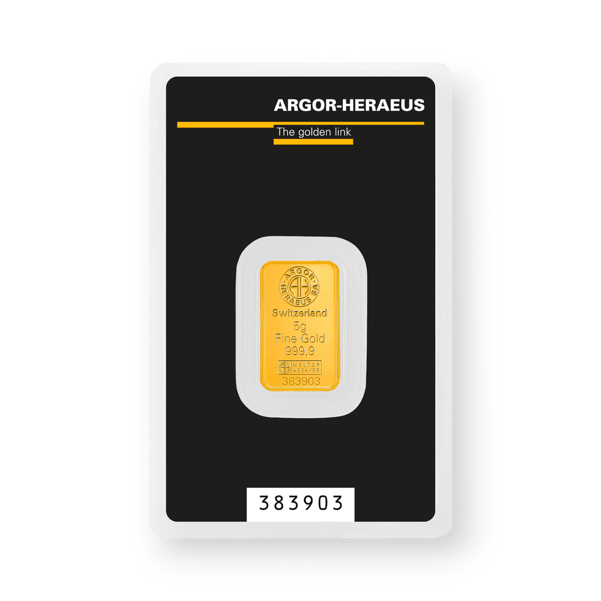 5 Gram Argor Heraeus Gold Bar .9999 Fine Sealed with Carded Assay