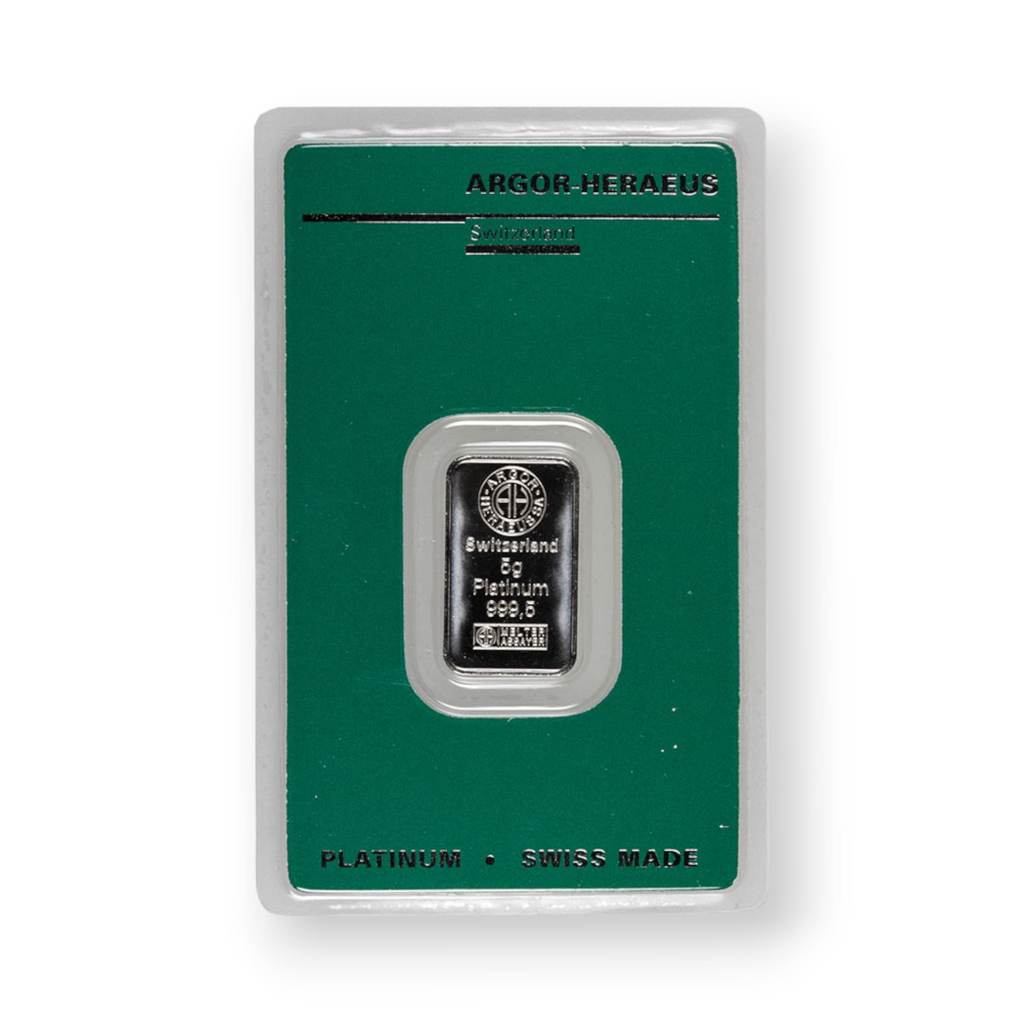 5 Gram Platinum Bar Argor Heraeus .9995 Fine Sealed in Carded Assay