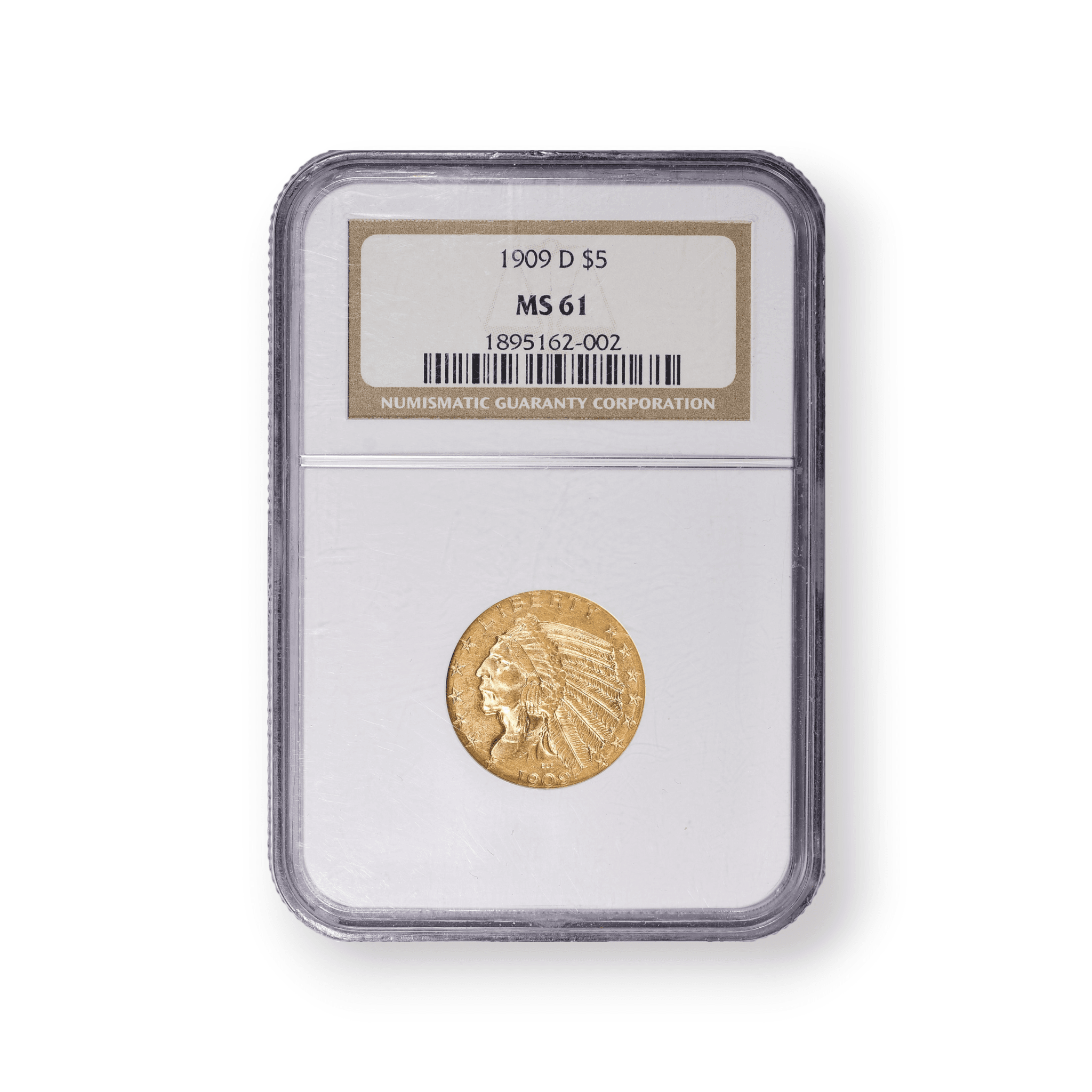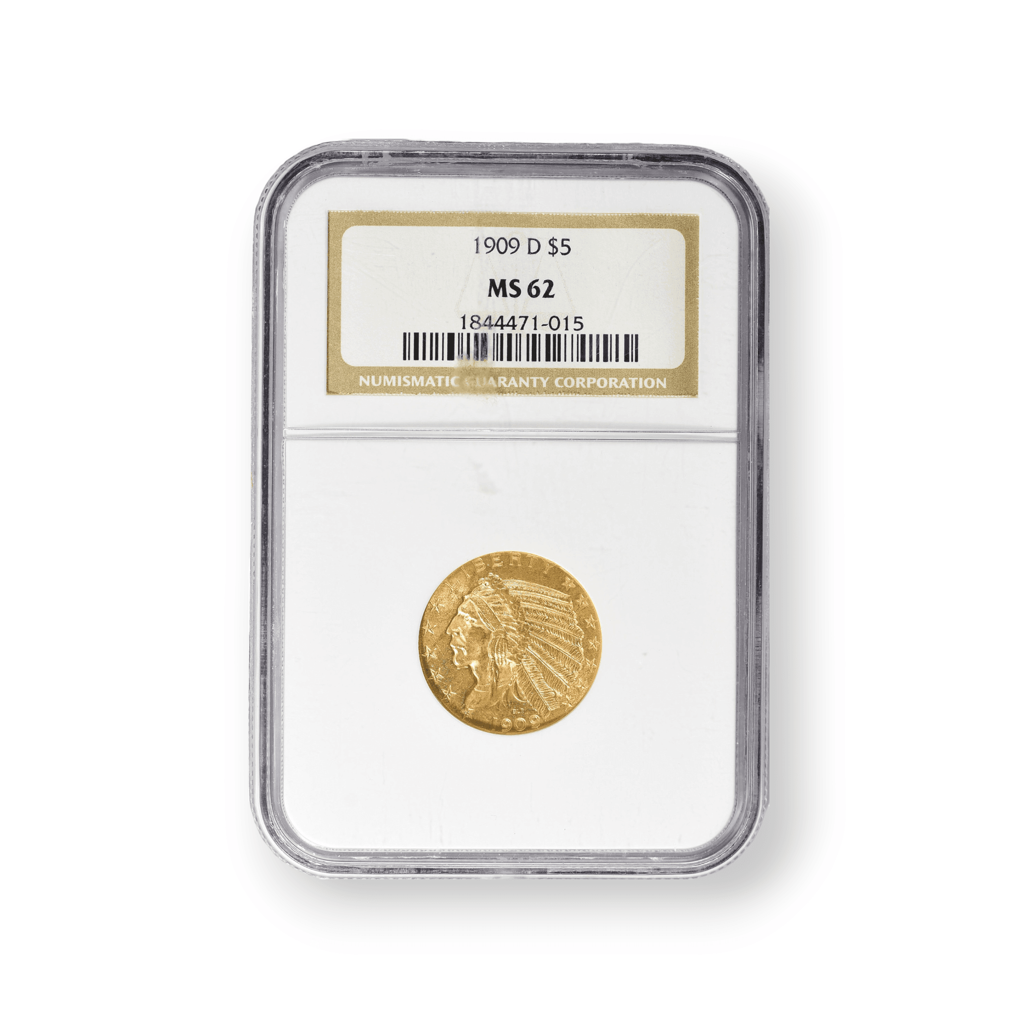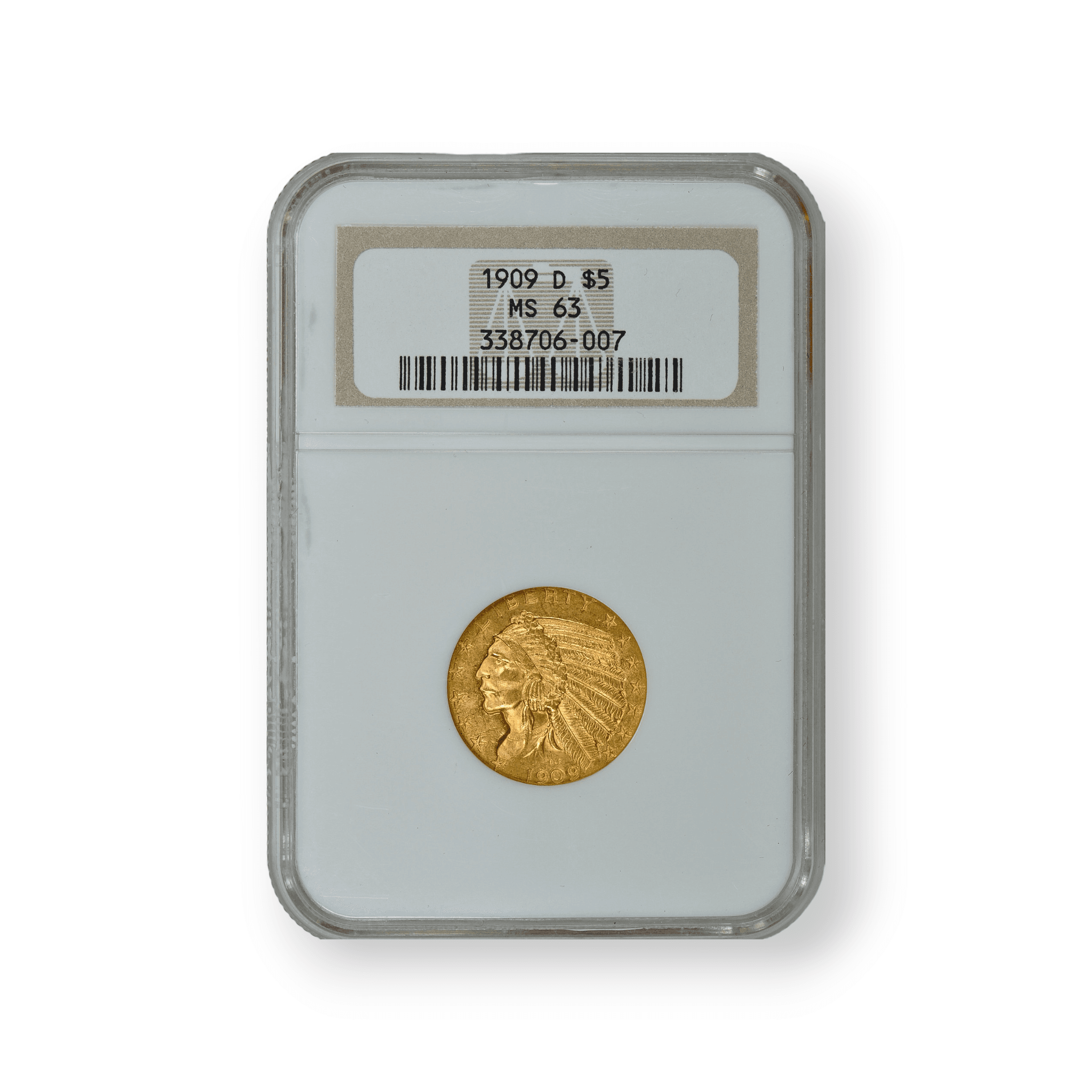 A $5 Indian Gold Half Eagle coin with an NGC Generic Date attribution is a noteworthy and historic piece of American numismatic heritage. Typically containing 0.24187 troy ounces of pure gold, these coins showcase a unique and intricate design with a Native American chief in headdress on the obverse and a perched bald eagle on the reverse. Highly valued by collectors and investors for their intrinsic gold value and historical significance, the "Generic Date" label signifies that they are categorized based on their gold content and design rather than a specific year of minting. This provides a convenient option for those interested in acquiring these iconic gold coins with the assurance of an NGC grading.