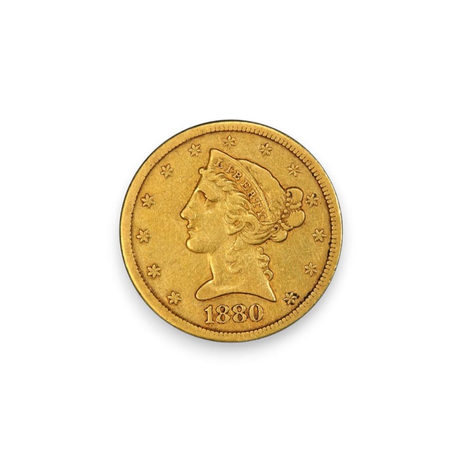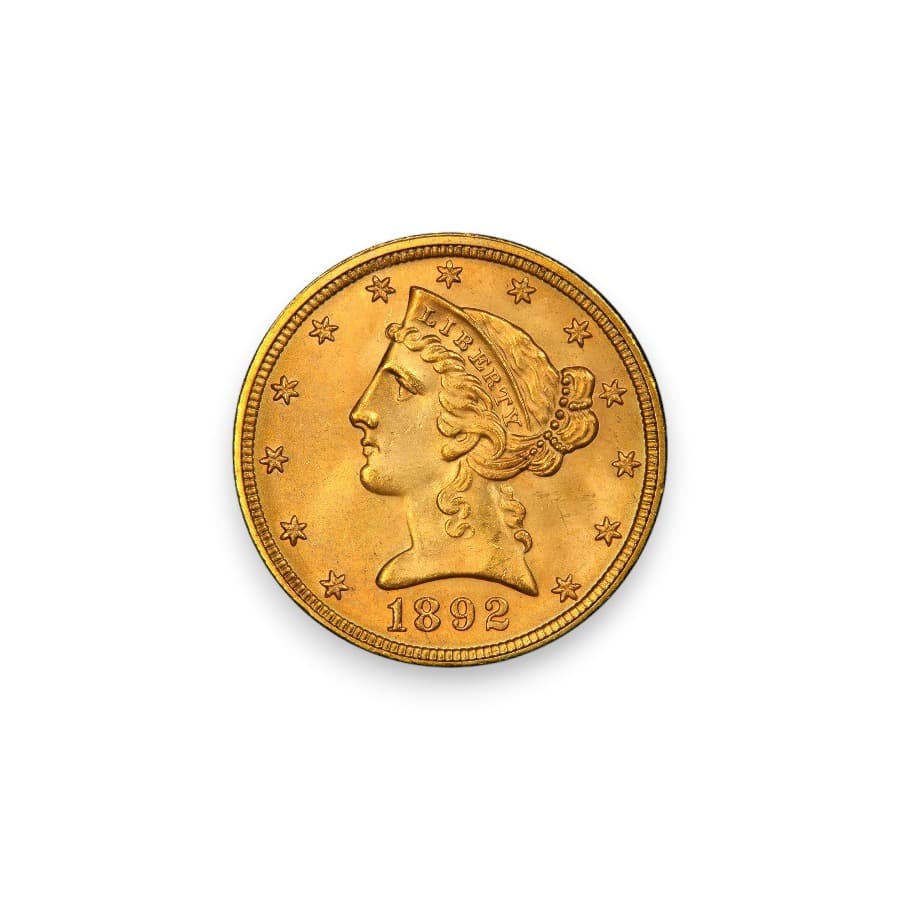 The $5 Liberty Head Gold Half Eagle, minted from 1839 to 1908, is a significant and iconic coin in American numismatic history. Featuring Lady Liberty on the obverse, adorned with a coronet inscribed with "LIBERTY" and a diadem of stars, and an eagle on the reverse clutching arrows and an olive branch, this coin embodies the spirit of American freedom and heritage. With a gold content of 0.24187 ounces and a diameter of 21.6 millimeters, it served as a means of commerce during the 19th and early 20th centuries. Today, collectors and investors highly value the $5 Liberty Head Gold Half Eagle for its historical significance and intrinsic worth, making it a cherished piece in the world of rare and precious coins.