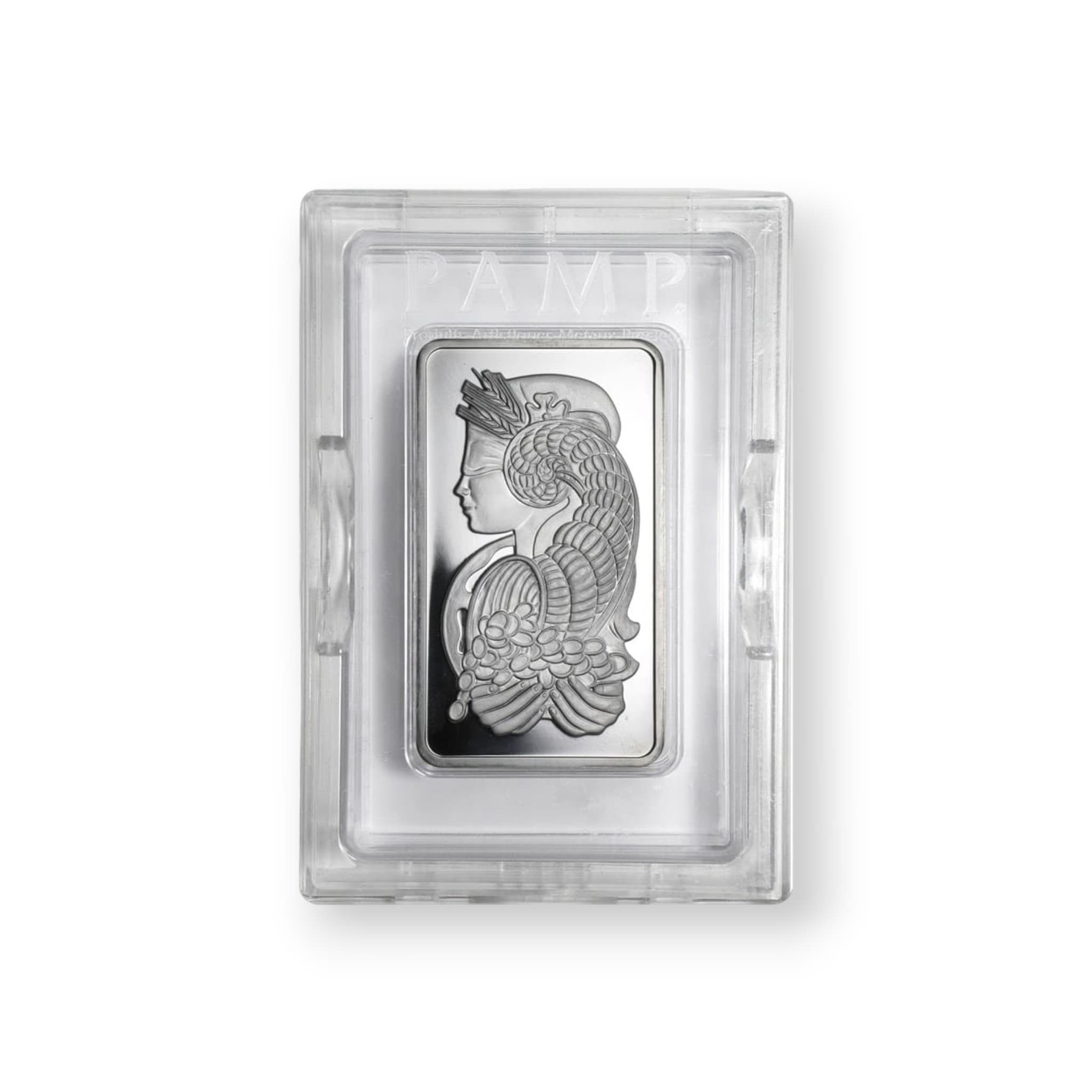 The 5 oz Platinum Bar PAMP Lady Fortuna is a premium investment product, crafted in .9995 fine platinum and weighing 5 troy ounces (approximately 155.517 grams). This bar features the iconic Lady Fortuna design on the obverse, symbolizing prosperity and luck, with intricate details that highlight the craftsmanship of PAMP Suisse. The reverse side typically includes the PAMP Suisse logo, along with the weight, purity, and unique serial number of the bar. Each bar is sealed in a tamper-evident assay card, which certifies its authenticity and platinum content, providing an added layer of security and assurance for investors. Renowned for its high quality and aesthetic appeal, the PAMP Lady Fortuna Platinum Bar is a valuable addition to any investment portfolio or precious metals collection, combining beauty, purity, and trusted authenticity.