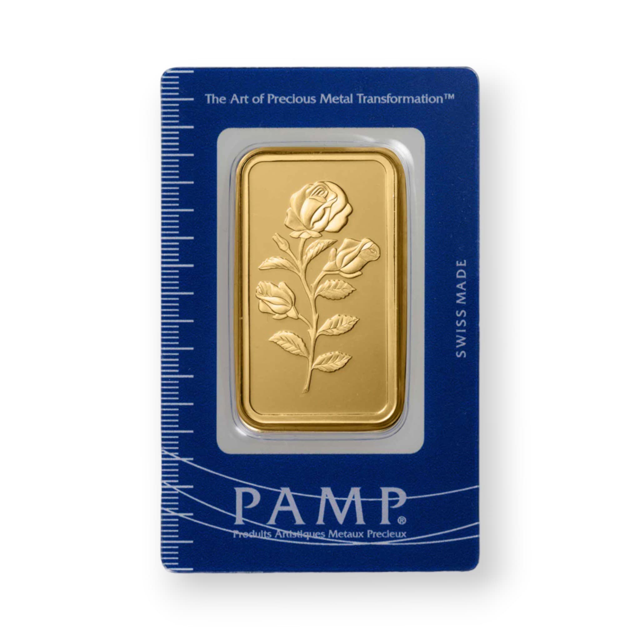 The 50 Gram Pamp Rosa Gold Bar is a premium investment-grade bullion product, crafted from .9999 fine gold. Manufactured by the renowned Swiss refiner PAMP Suisse, this gold bar showcases the iconic Rosa design, featuring a delicate rose motif on its obverse. Each bar is individually sealed in a tamper-evident assay card, which includes a unique serial number, bar weight, and gold purity, ensuring the authenticity and protection of your investment. With its exceptional purity and beautiful design, the 50 Gram Pamp Rosa Gold Bar is an attractive choice for both collectors and investors seeking to diversify their precious metals portfolio.
