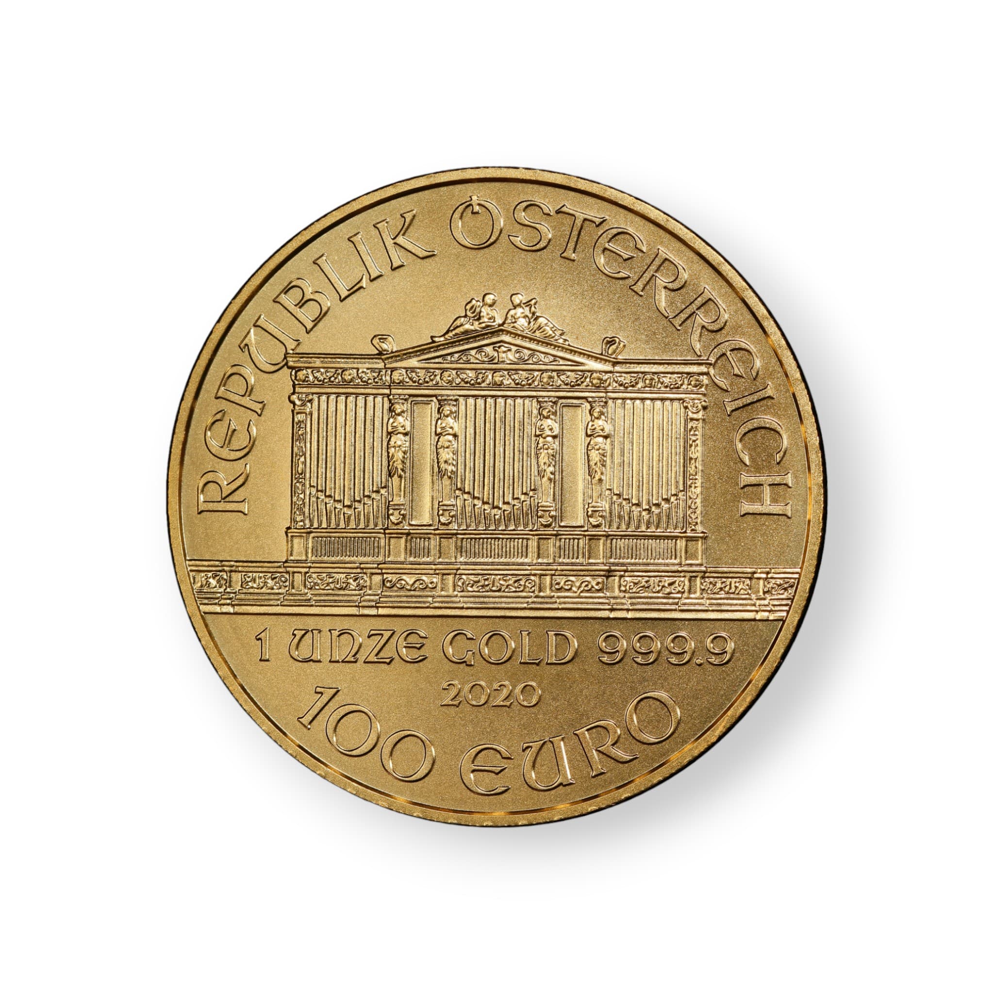 The Austrian Philharmonic 1 oz Gold Coin is a fine example of European minting tradition, produced by the Austrian Mint with a purity of .9999 fine gold, and weighing one troy ounce. Celebrated for its design and purity, the coin pays tribute to Austria's rich musical and cultural heritage. The obverse of the coin features the Great Organ from the Golden Hall in Vienna's Musikverein, the concert hall of the Vienna Philharmonic Orchestra, while the reverse displays an array of orchestral instruments including the cello, violin, harp, French horn, and bassoon. The coin's design reflects the nation's pride in its world-famous philharmonic orchestra. Offered in various years, each with the same timeless design, the Austrian Philharmonic gold coin is favored by investors for its gold content and by collectors for its tribute to Austria's classical music legacy.