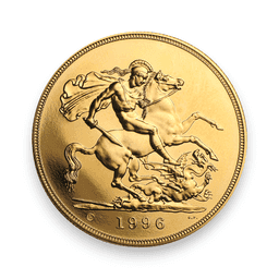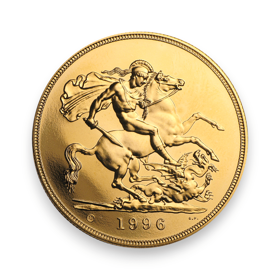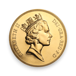 The British 5 Sovereign Gold Coin, also known as the Quintuple Sovereign or £5 piece, is an impressive and larger coin that contains 36.609 grams of 22-carat gold, which is equivalent to 1.1775 troy ounces of pure gold. These coins often feature the reigning monarch of the time they were struck on the obverse and the classic St. George and the Dragon design by Benedetto Pistrucci on the reverse, a motif that has been associated with British sovereigns since 1817. Proof versions of the coin are struck with special dies to achieve a high-quality finish with a sharp, detailed image and mirror-like background, making them attractive to collectors. The "random date" description indicates that the specific year of the coin you receive will vary based on availability, and in a Box indicates that the coin comes with its original packaging which often includes a protective case and a certificate of authenticity.