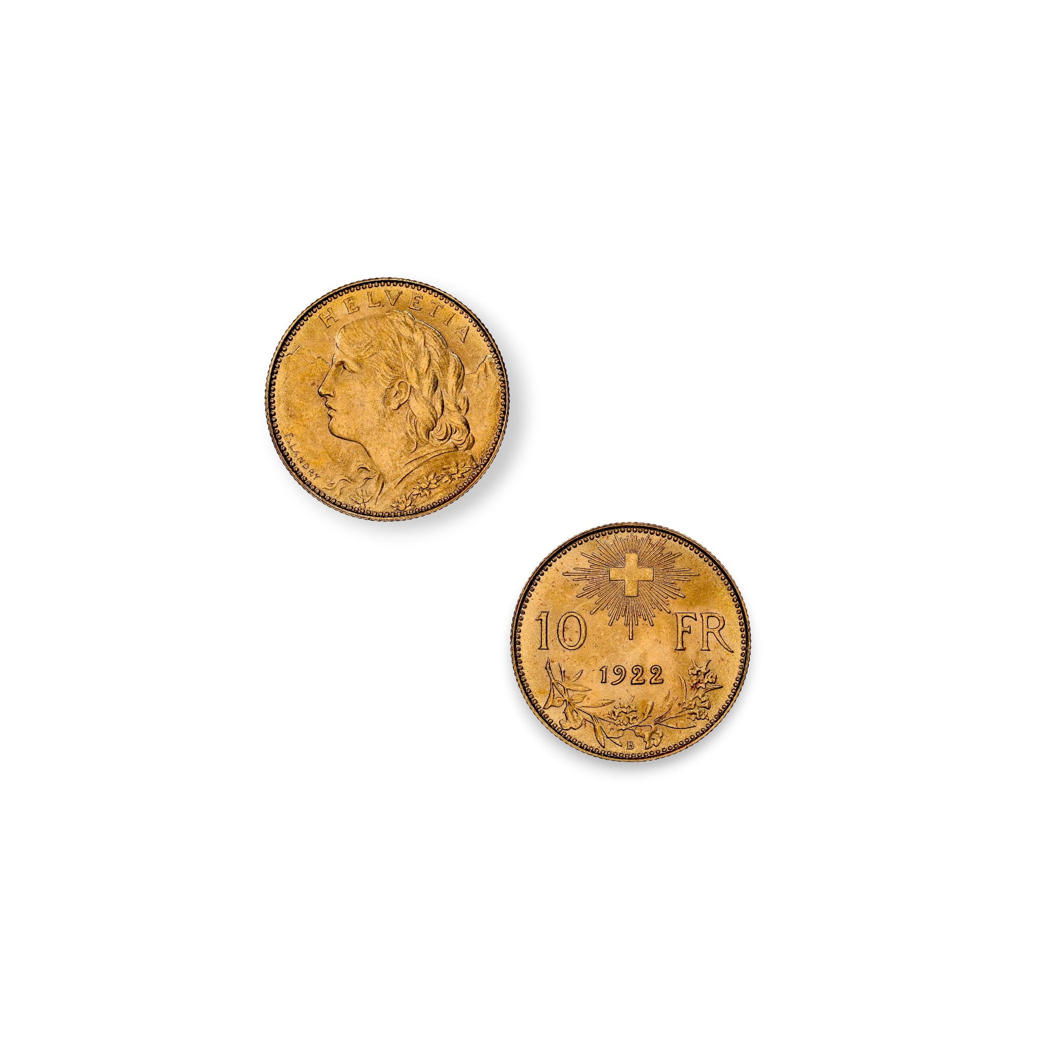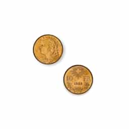 The Switzerland 10 Francs Gold Coin, issued in various years, is a classic numismatic piece that combines historical significance with the intrinsic value of gold. Minted in Switzerland, these coins are struck in fine gold, typically .900 fineness, and weigh approximately 3.2258 grams. The design often features a rendition of Vreneli, the Swiss Miss, symbolizing Switzerland's heritage and beauty, on the obverse, while the reverse usually showcases the Swiss shield flanked by oak leaves, representing the country's strength and independence. These coins were circulated as legal tender in Switzerland, making them a part of the country's monetary history. Collectors and investors alike seek out the Switzerland 10 Francs Gold Coin for its gold content, historical appeal, and the craftsmanship evident in its design. Issued in random dates, each coin tells a part of Switzerland's rich numismatic story, offering a tangible connection to the past and a valuable addition to any collection or investment portfolio focused on gold coins.